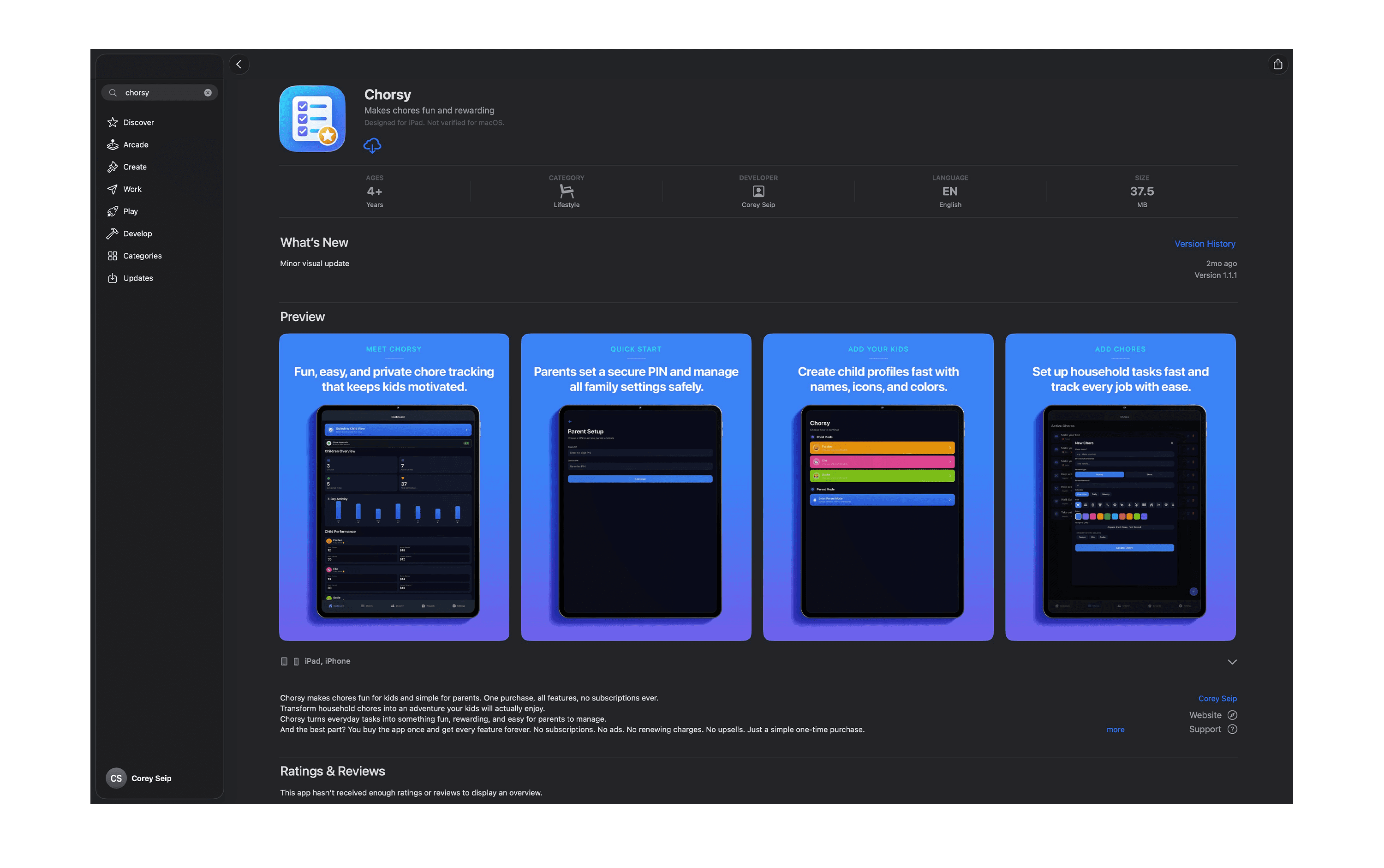 Chorsy is live in the App Store as a fully functioning app used by real families. It is completely free with no ads, no tracking, and no in-app purchases. The project is intentionally built around trust, usefulness, and the fun of making something real that people can actually use.