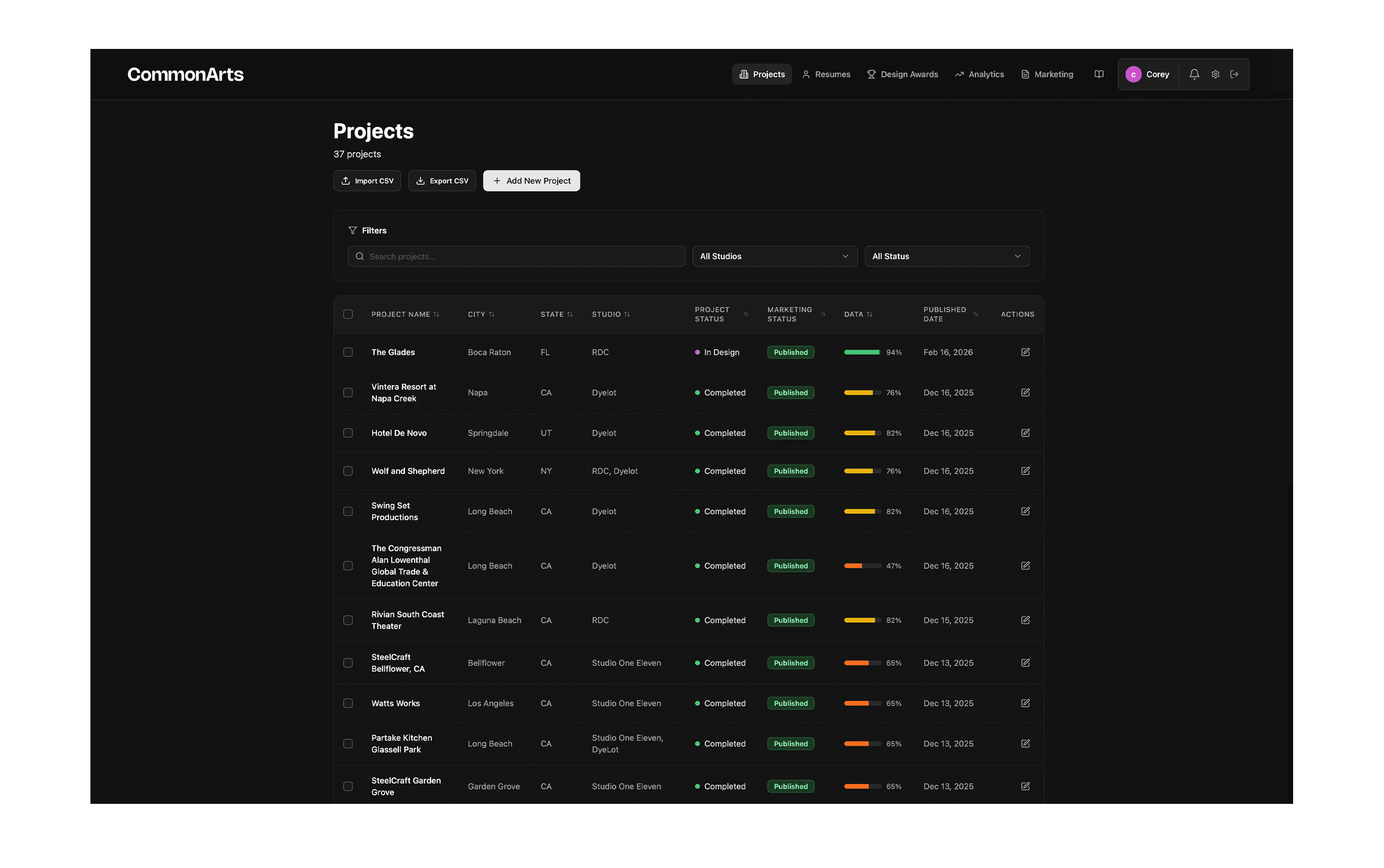 The day-to-day reality was simple: information existed, but it was scattered. Project details were in one database, photos were in different libraries, resumes lived on the server, and marketing requests were tracked inconsistently. This platform was built to bring everything into one place and make the “state of the data” visible at a glance, so teams could fix gaps before they became fire drills.