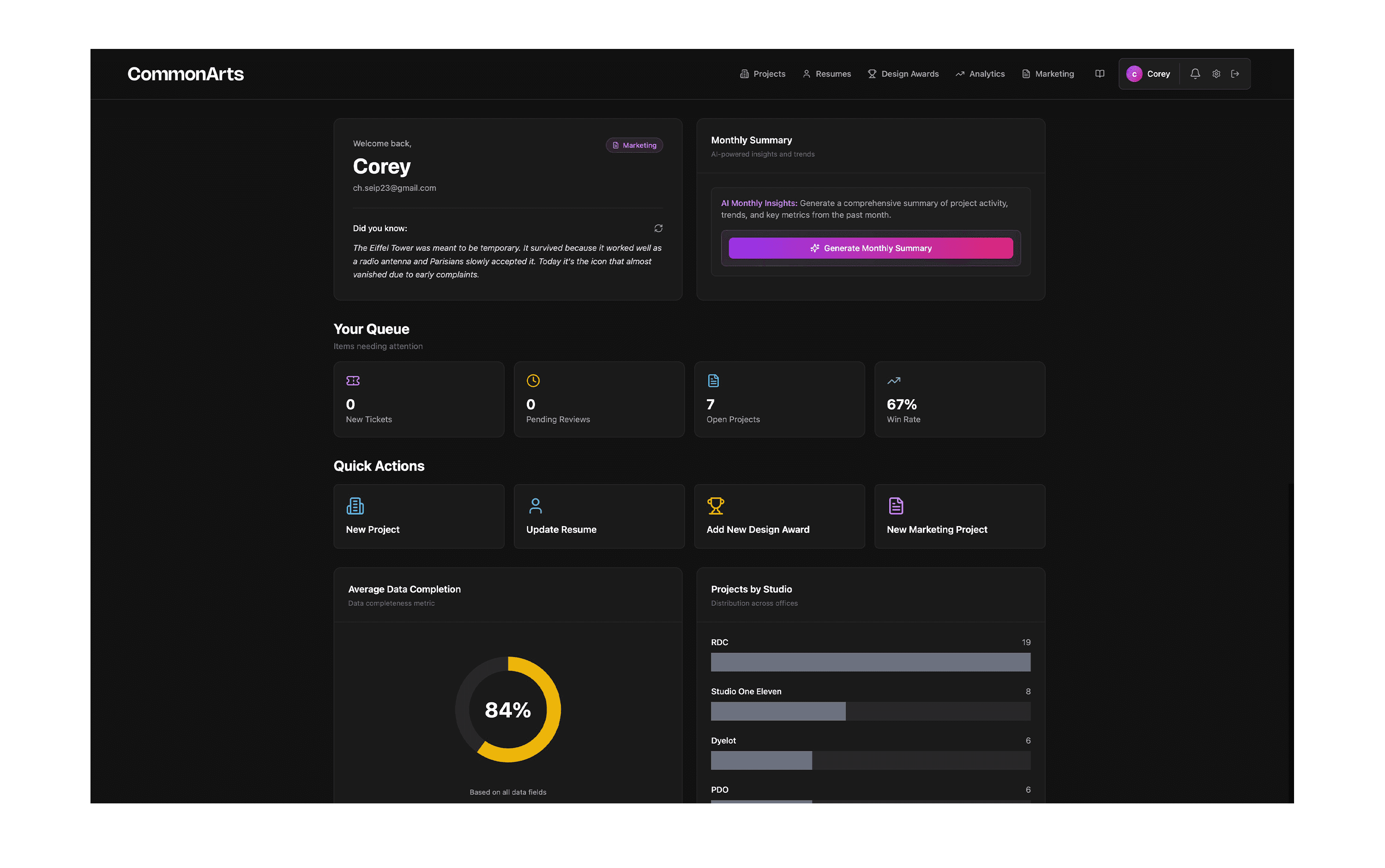 Proposal work slowed down because teams had to hunt for information. Records were often incomplete, but there was no easy way to know what was missing until the last minute. Marketing also needed a clearer queue for requests, updates, and deadlines, with accountability and visibility across studios.
