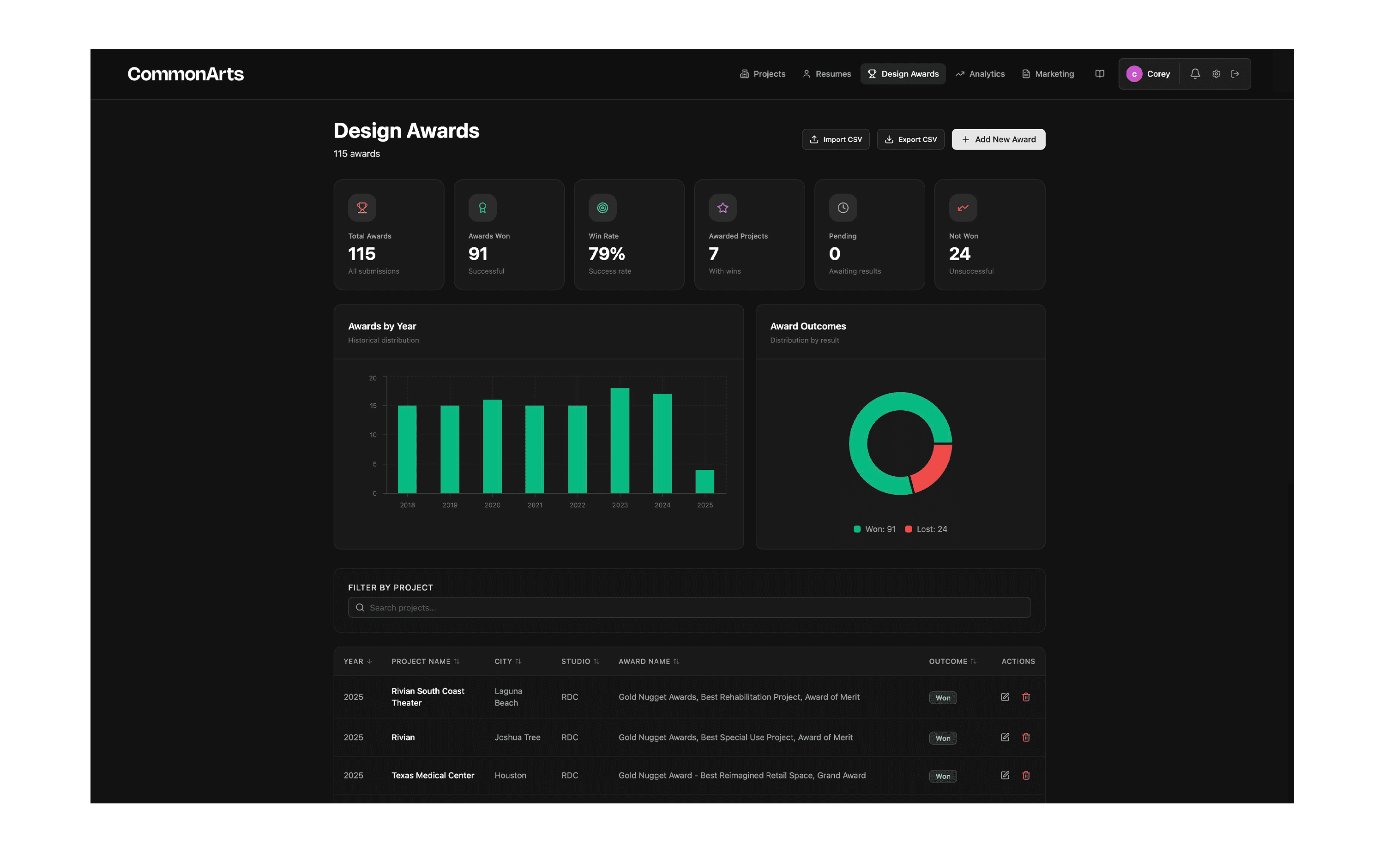 Awards Database Auto Linked to Staff Resumes